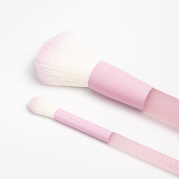 Logra un acabado impecable con este set de dos piezas diseñado para las etapas clave del maquillaje: el sellado y el difuminado. Equipadas con cerdas de fibra sintética ultra suave que imitan el pelo natural, estas brochas son perfectas para trabajar con texturas en polvo, garantizando una aplicación ligera y sin manchas.